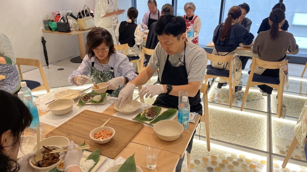 皆さまが笹寿司づくりに没頭されている様子を眺めていたら、あたかもお米や具材と一緒にそれぞれの想いも笹の葉に乗せ重ねているように映り、主催するこちらもとても嬉しい気分になりました。