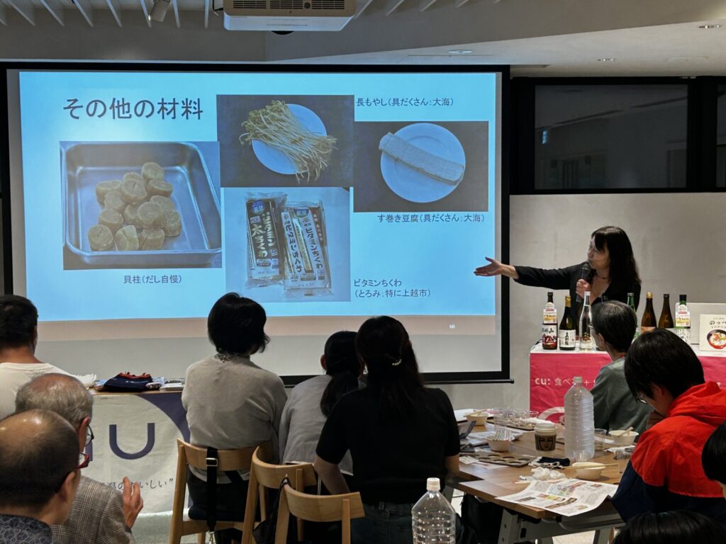 2025(令和7)年10 月12 日(日)、㈱ニールの髙橋真理子さんをお招きして、新潟の郷土料理のっぺと日本酒を飲みながらお話を聞くイベントを開催しました。