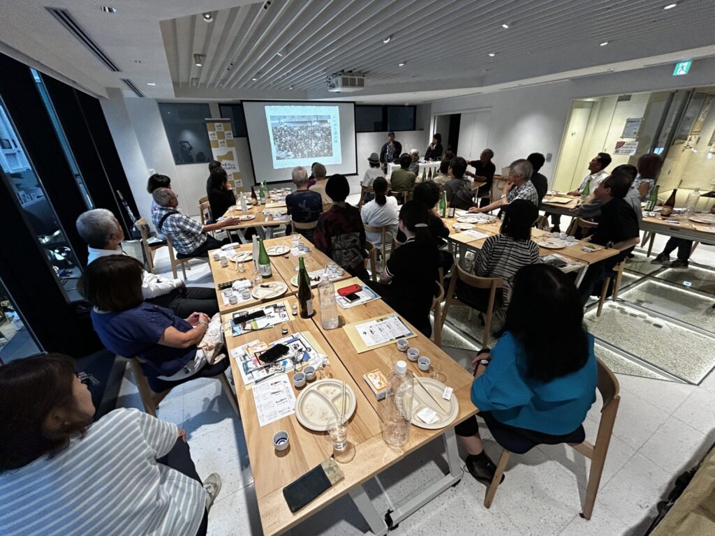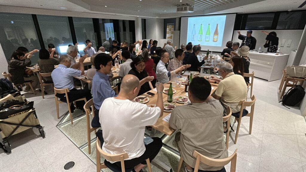 参加者全員が日本酒好き。初めて会った方でも乾杯すると、すぐに打ち解け、テーブルごとに会話が生まれます。会場は笑い顔であふれ、楽しい雰囲気に包まれました。