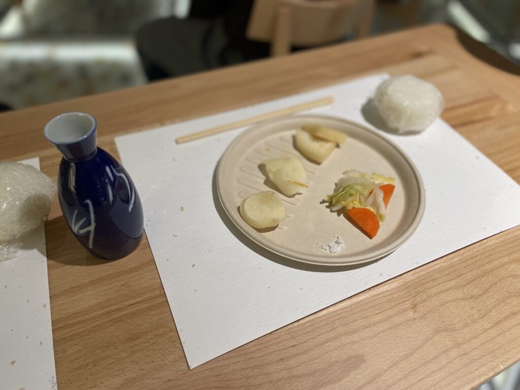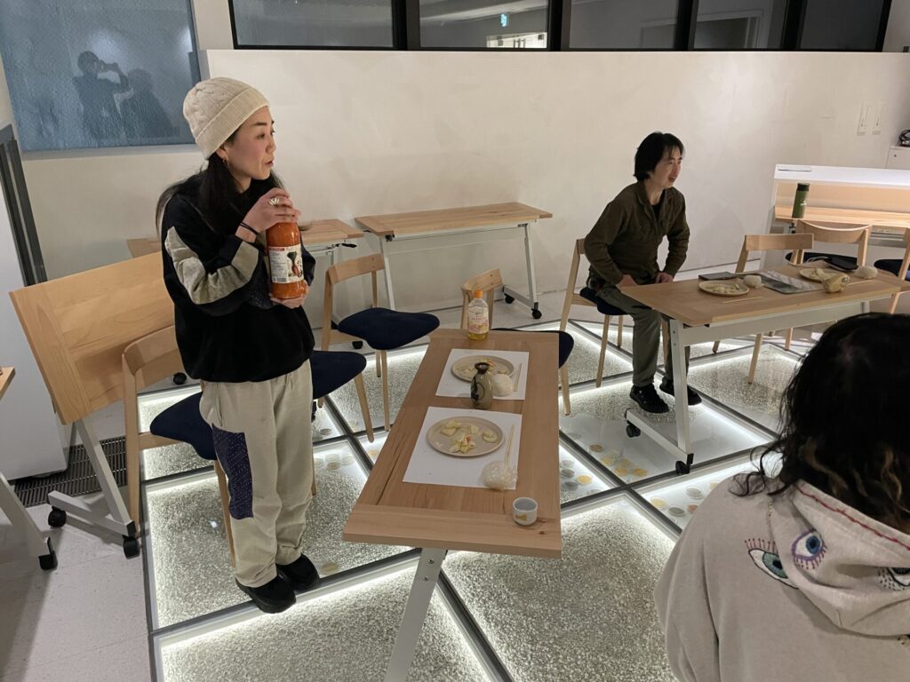夜の部は、新潟の日本酒(松乃井、苗場酒造)やニンジンジュース、ごはんと漬物を味わいながらスタート。昼の部の雰囲気が好評だったこともあり、夜の部も引き続き「ラジオ的」な進行で、自然な対話が広がりました。