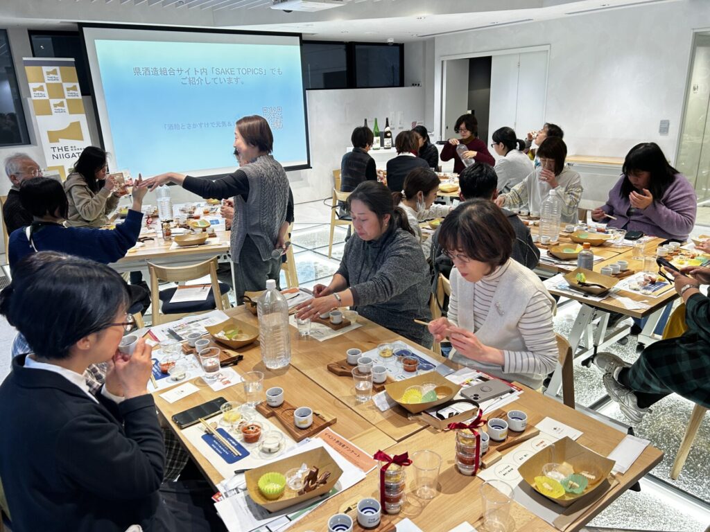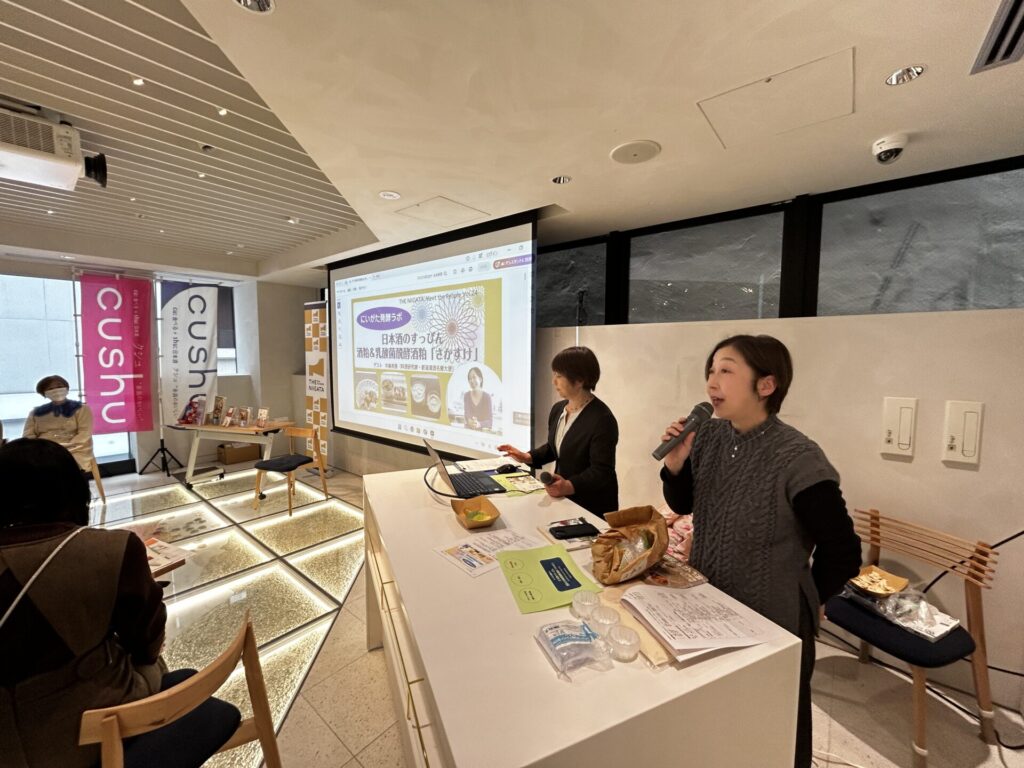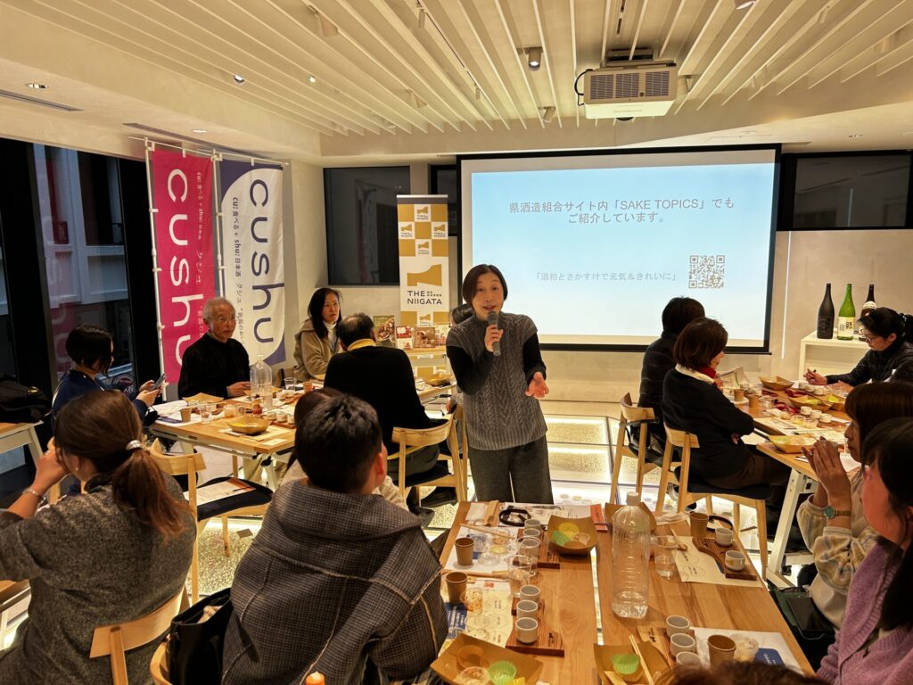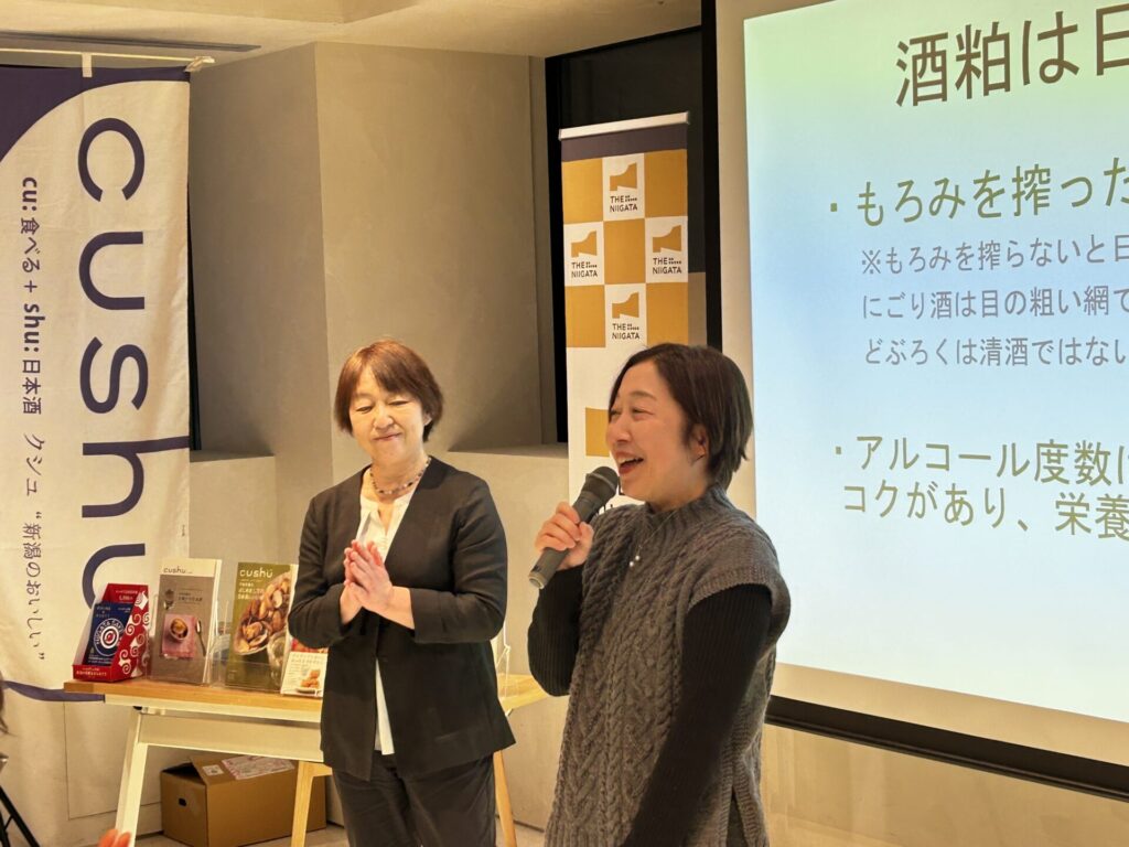 参加者の皆さまは熱心に耳を傾けながら、新潟の日本酒と酒粕の奥深い魅力を体感し、会場は終始あたたかな雰囲気に包まれました。新潟の発酵文化の豊かさを改めて実感する、楽しく幸せなひとときとなりました。