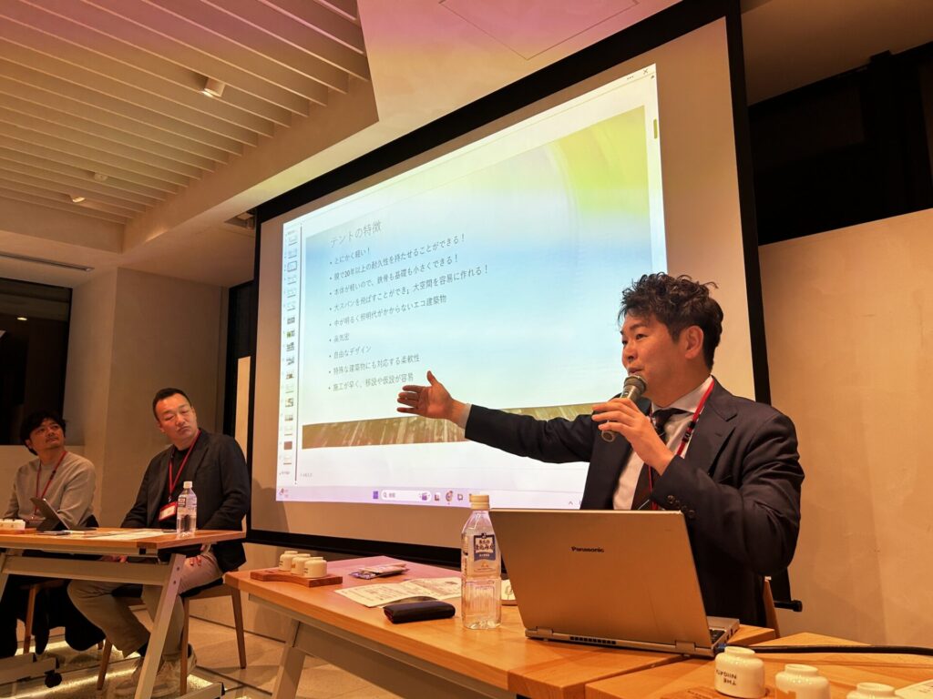 また、会社のテント内にボルダリング場を設けたり、市内の公園にテントを張りスケートボードパークを設ける構想など、これまでにないことに挑戦し、地域活性化に取り組んでいるお話をお聞きしました。