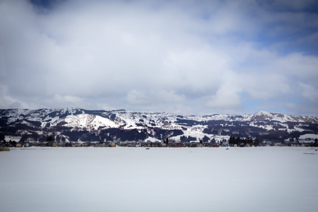 標高約1,000mの山頂駅に降り立つと、そこは粉雪が舞うほどの銀世界。目の前にそびえる雄大な連峰と、眼下に広がる街並みが織りなす絶景。その大パノラマは、まさに圧巻の一言。ただ静かに、時間を忘れて眺めていたくなるスポットでした。
