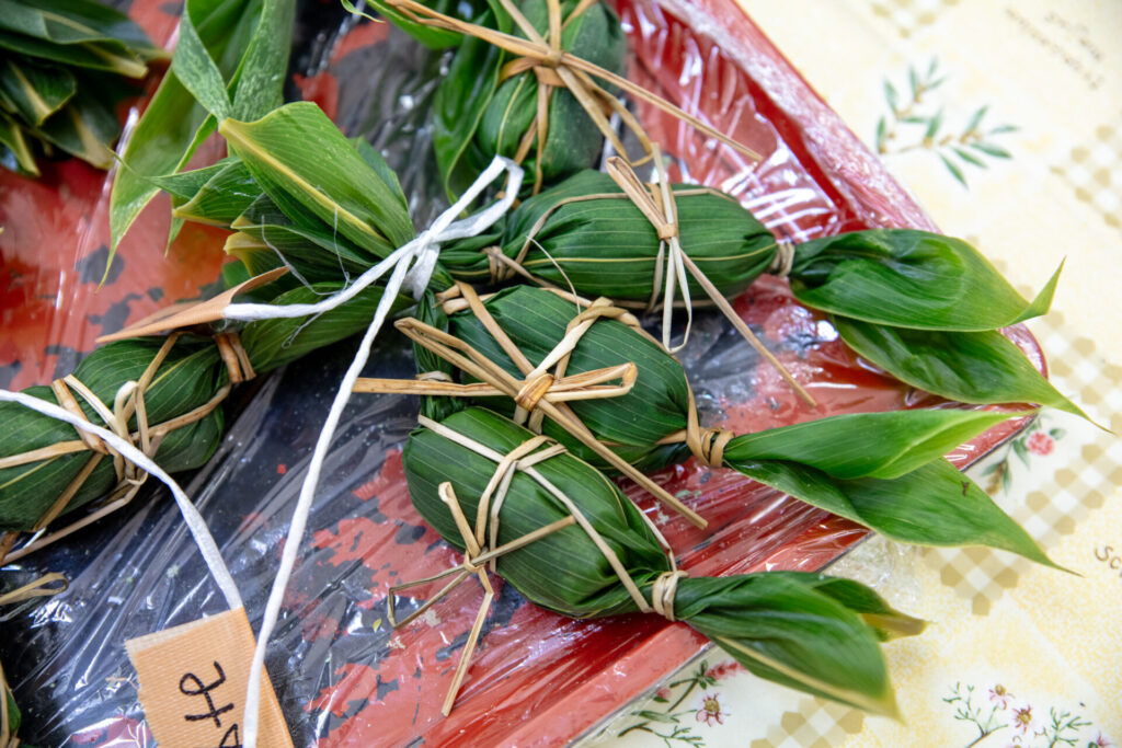 粉をこねるところから笹の葉で包むまで、一連の工程を本格的に体験。4〜5人のグループごとにスタッフさんが丁寧にサポートしてくれるので、初めての方でも安心!自分で形作ったお団子は、その場ですぐに厨房で蒸し上げていただきました。