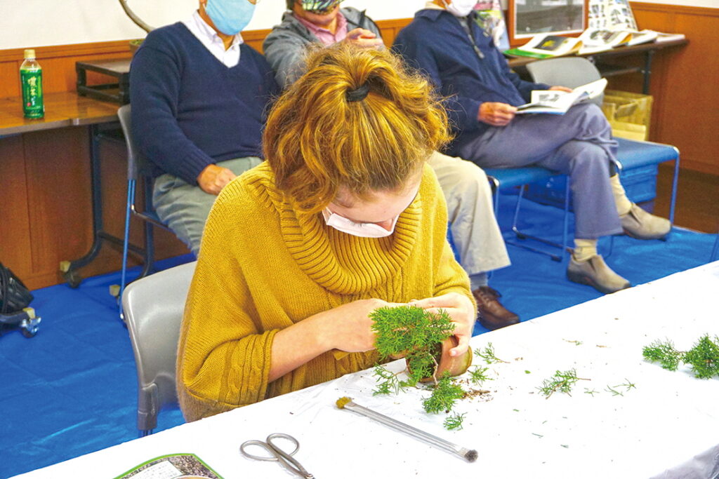 真柏の特長や育て方、盆栽の形を整える「針金掛け」などを体験していただける盆栽ワークショップを行います。