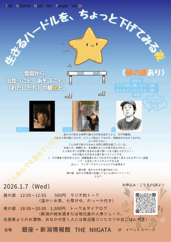 生きるハードルを、ちょっと下げてみる夜(昼の部あり) / THE NIIGATA: Meet the People Vol.20