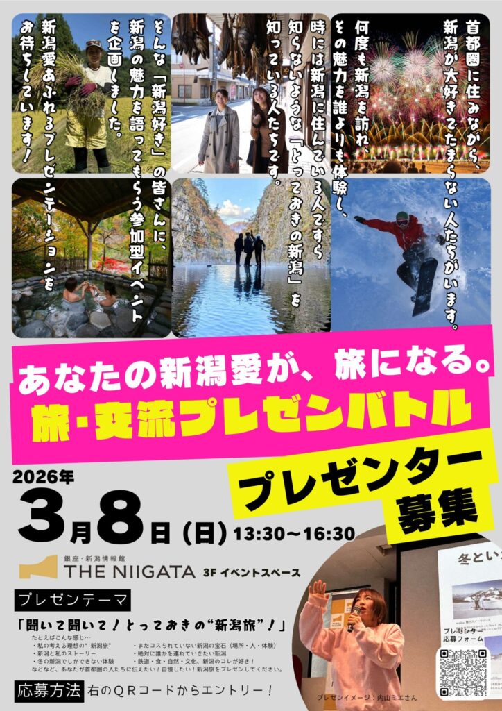 あなたの新潟愛あふれるプレゼンテーションを通じて、首都圏から新潟への新たな人の流れを一緒に生み出してみませんか!