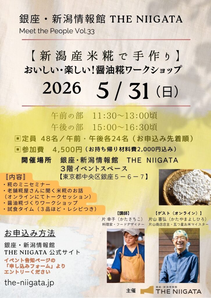 イベント名 【新潟産米糀で手作り】おいしい・楽しい!醤油糀ワークショップ/ THE NIIGATA: Meet the People Vol.33